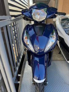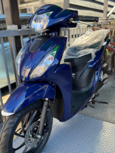 通勤・通学の足として人気のDio110に、落ち着きのあるブルーが仲間入りです。 写真では伝わりきらないのですが、光の当たり方で少し表情が変わる上品な色味で、 「派手すぎず、でもしっかり個性がある」そんな一台に仕上がっています。